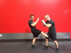 You can use this as an example, or create your own off this template. The first move is a kick right up the attack’s “A frame” or groin area. This front kick is found in many different arts, but let me further explain a couple finer points with this Krav Maga move.